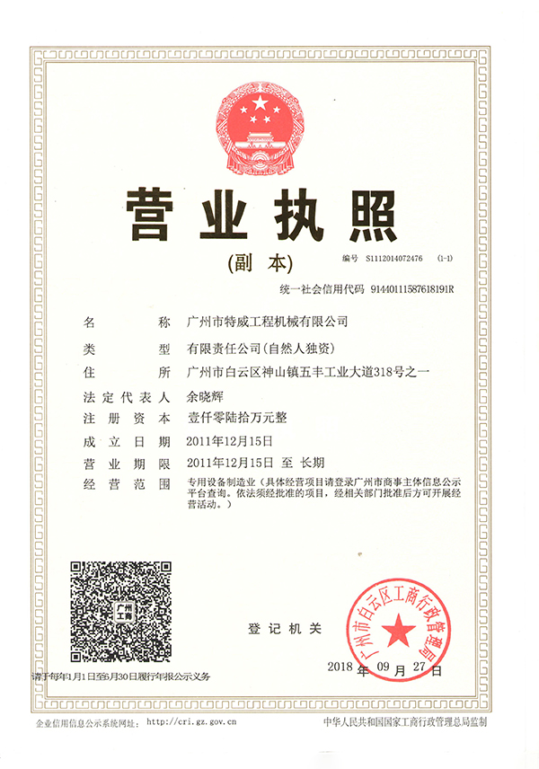 廣州市特威工程機械有限公司地處廣州市白云區神山鎮,廣清高速神山出口附近,是一家施工升降機的專業生產廠家。公司成立于2011年,占地100000多平方米,注冊資金1060萬元,現有員工300余人其中工程技術人員33人,高級技術人員52人。